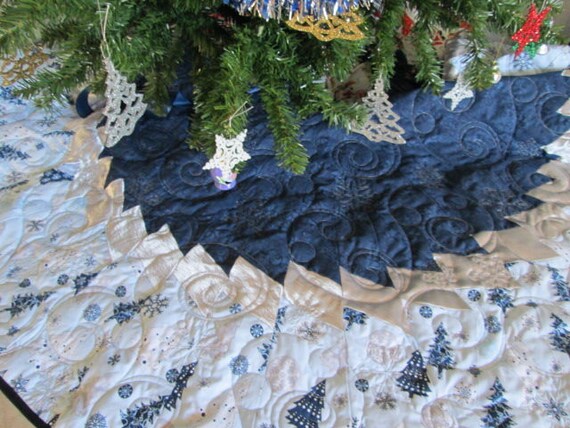 Quilted Christmas Tree Skirt Blue Silver Tree Skirt Ready To Ship