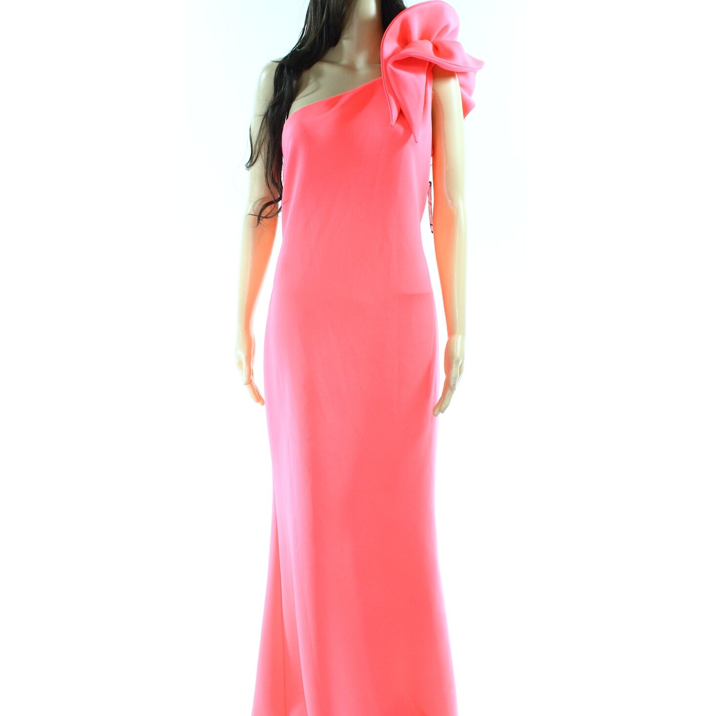 Betsy Adam Neon Pink Womens Size 4 One Shoulder Ruffled Gown